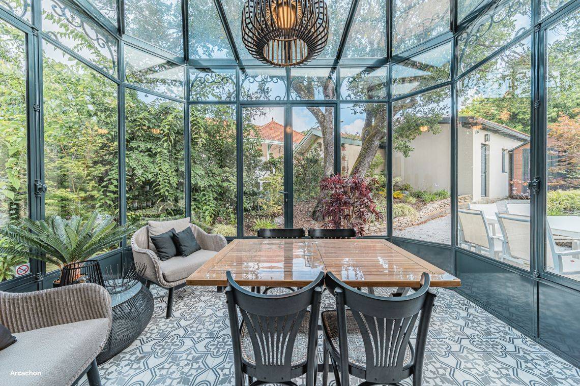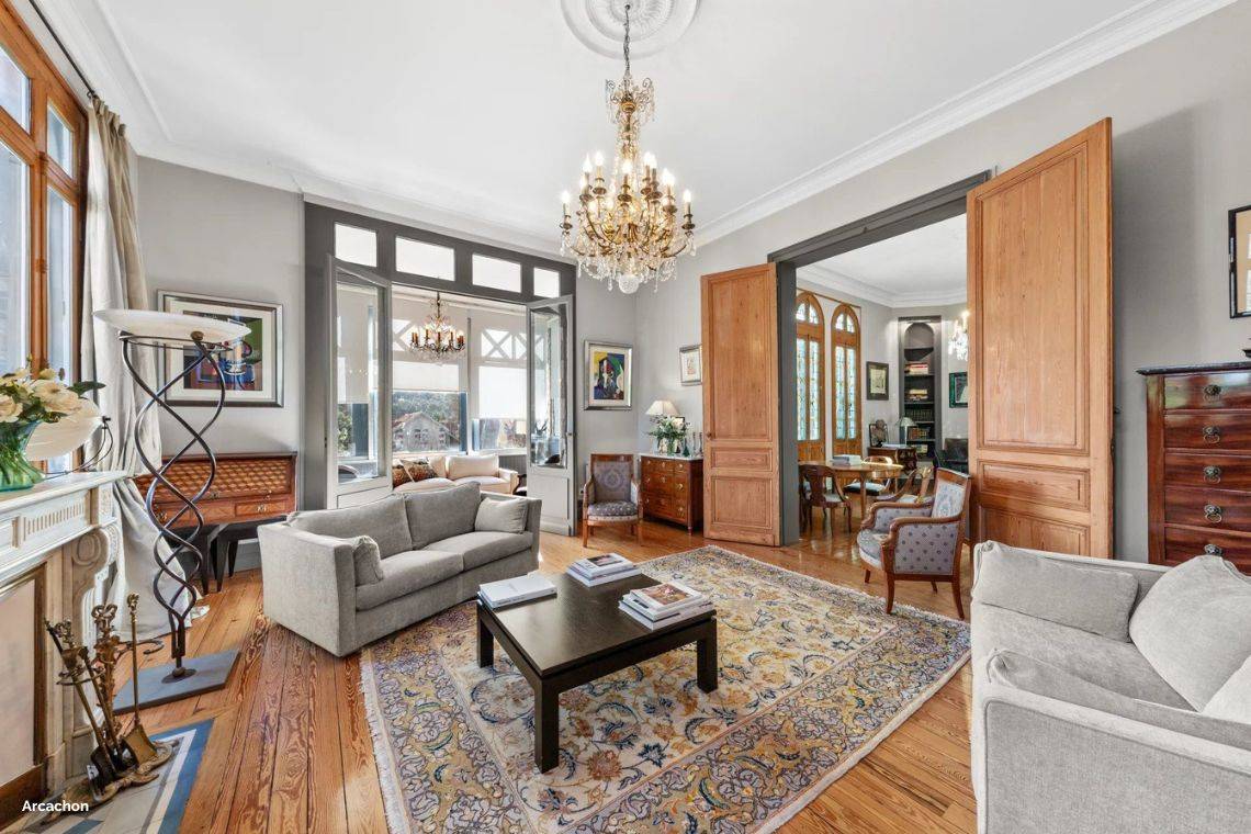 Les carreaux de ciment au sol, les lustres en cristal et les meubles d'antiquaires côtoient désormais des pièces plus actuelles, telles que des canapés aux lignes épurées et des œuvres d’art contemporaines. Les couleurs profondes comme le bordeaux, le bleu nuit, et le vert forêt s’allient aux nuances plus douces pour créer un intérieur chaleureux et sophistiqué. Pour ceux qui aiment le charme des maisons d’antan, Arcachon est le lieu parfait pour combiner passé et présent avec élégance.